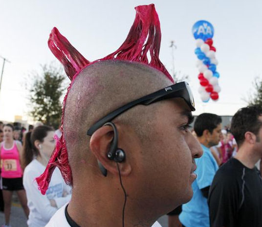 I hi-tailed it over to Northpark Mall, and saw the ocean of people who were arriving all wearing the color pink in some fashion; pink wigs, pink shoes, pink socks, pink shirts, pink sprayed-up mohawks, pink boas – pink everywhere!!