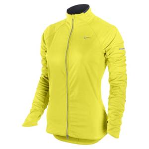 Wednesday on race week, I ran out at lunch, to Dick’s Sporting Goods and looked for a good rainproof/windproof running jacket. There were only two brands and types there – Nike Women’s Element Shield Running Jacket and an Under Armour Women’s Armour Chill Soft Shell Jacket.